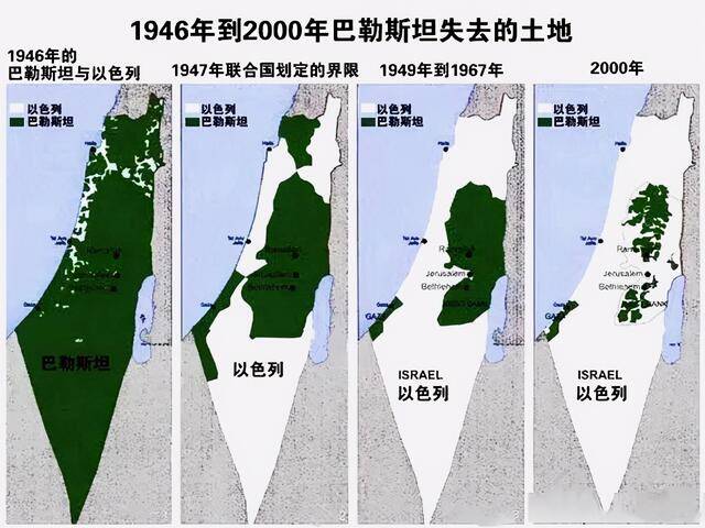 1948年,在美國操縱下,聯合國通過“181號決議”,強行將總面積為2.6萬多平方公里的巴勒斯坦地區中的57%平方公里劃給猶太人建立以色列國(那裡集中了大量肥沃的平源和淡水資源),43%劃給阿拉伯人建立巴勒斯坦,並將位於巴勒斯坦境內的耶路撒冷暫定為“國際城市”,歸屬未定。