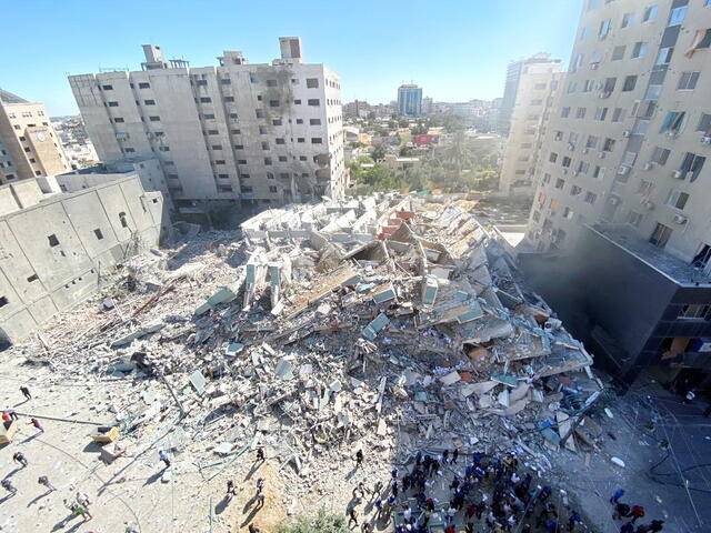 美聯社分支被轟炸的大樓 1、美國目標淪為泡灰 美國或許沒有想到,自己一味縱容以色列,終於養虎為患。 當地時間5月15日下午,以軍對巴基斯坦國加沙地帶一座辦公樓進行了猛烈轟炸。樓內有美聯社和卡塔爾特媒體辦公室。 美聯社是美國最大的通訊社,半島電視台號稱是世界三大電視新聞頻道之一。空襲前一小時,以軍發出最後通牒,稱該樓內有哈馬斯的情報機構,要求樓內所有人員迅速撤離,大樓所有者邁赫迪和記者請求多給10分鐘時間,遭斷然拒絕。很快,以色列的3枚導彈拖着長長的火舌奔襲而來,幾聲巨響過後,該大樓瞬間被夷為平地。
