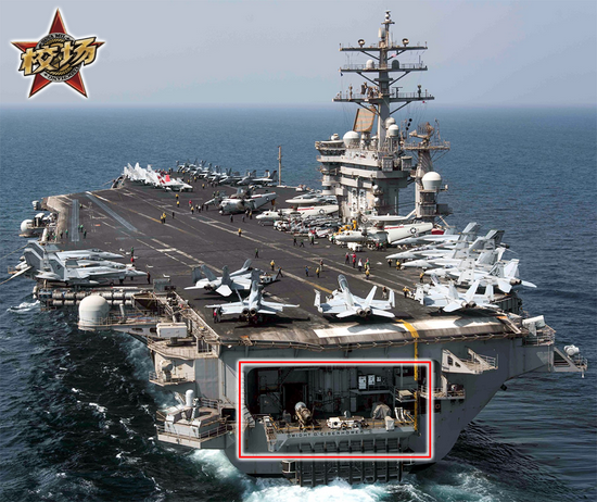 ![]() 最后,美军航母舰尾都设置了一个可以直通机库的大型舷台。这个舷台的作用是,如果有飞机的发动机出现了故障,需要在机库中维修。修好了之后可以直接把发动机推出舷台进行试车。这大大简化了舰载机发动机的维修流程,提高了维修效率。