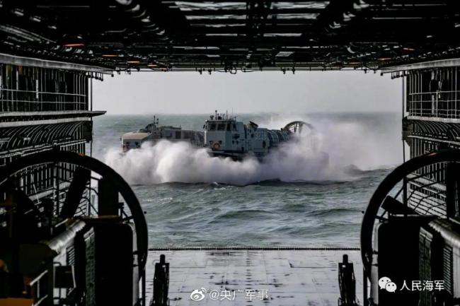 近日,东部战区海军某登陆舰支队在东海某海域,组织开展了实战背景下的气垫艇与船坞登陆舰融合训练。一起感受海上“野马”驭浪狂奔的风采