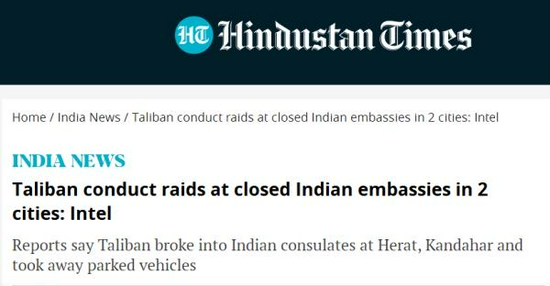 | 印媒:印度领馆关闭后塔利班破门而入 带走了院内汽车 |