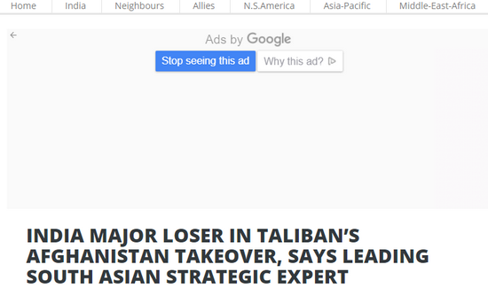 印度戰略事務分析人士、前特種部隊軍官佩克·卡托奇中將表示,印度在阿富汗的30億美元投資是為了改善阿富汗民眾的生活。但印度誤判了地緣戰略局勢,錯誤的認為美國會穩定阿富汗局勢,但美國卻沒有做到這一點。相反美國正在放棄阿富汗,將其讓給了塔利班。