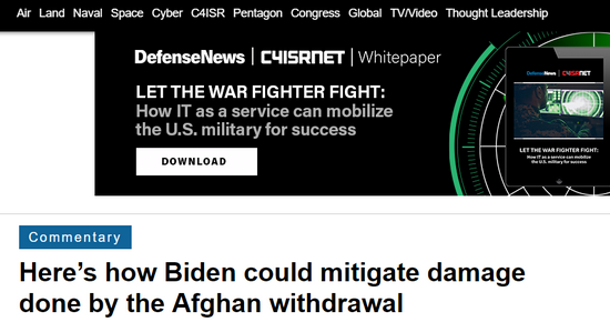 据美国媒体《防务新闻》报道,历史学家未来将会有的是时间整理证据,对美国近20年来对阿富汗军事干预的悲惨结局进行指责。而四届美国总统在阿富汗问题上也有足够多的责任可以分摊。但现在美国的决策者没有时间,他们必须迅速采取行动,减轻因阿富汗撤军对美国的全球信誉和联盟领导地位造成的损害。