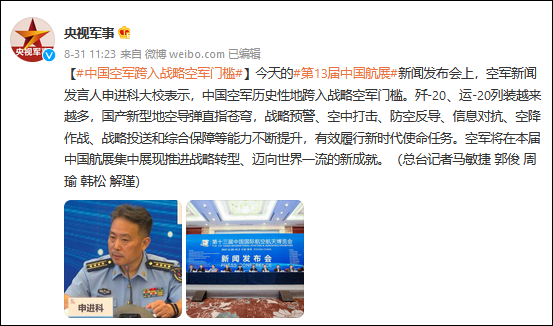 | 空軍新聞發言人:中國空軍歷史性跨入戰略空軍門檻 |
