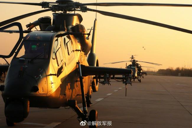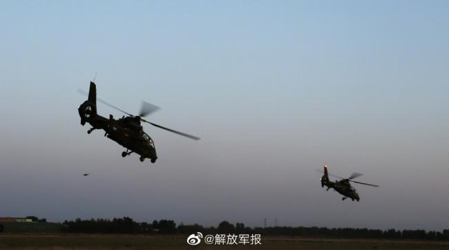 近日,陆军某部开展直升机多机型、大场次、跨昼夜营连战术演练。一声令下,数架直升机依次升空,飞行员操控战机对“敌”目标实施精准打击!