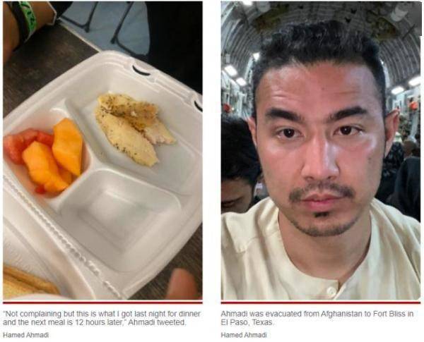 除了健康问题,另一个困扰阿富汗难民的问题便是饥饿。不久前,阿富汗人艾哈迈迪在推特上晒出了得州布利斯堡基地向难民发放的食物:仅仅只有几块鸡肉、水果和几片面包,并且两餐之间要间隔12小时。然而,许多美国人攻击艾哈迈迪忘恩负义,并要求他滚回阿富汗。不只是在美国,饥饿几乎是所有逃到西方的阿富汗难民所面临的问题,近段时间,法国难民营频出阿富汗人误食毒蘑菇中毒事件,当地媒体称,这是因为难民营食物不充足,阿富汗人才会去自行采食毒蘑菇。 现实与幻想相差甚远,抵达美国的阿富汗人才明白,这里不是极乐地,西方也不是他们的庇护神。 |