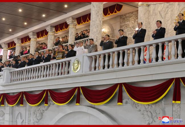 当地时间9日,据朝中社报道,为庆祝朝鲜建国73周年,朝鲜当天在平壤市中心金日成广场举行阅兵式。朝鲜劳动党总书记、国务委员长金正恩出席阅兵式。