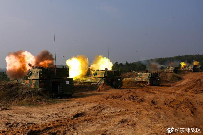 | 自行榴彈炮集火發射火力猛烈 |