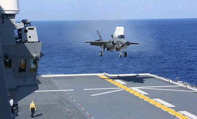▲美军F-35B战斗机在“出云”号上进行着舰测试
