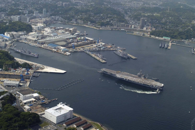 ▲在横须贺港停靠的美军航母