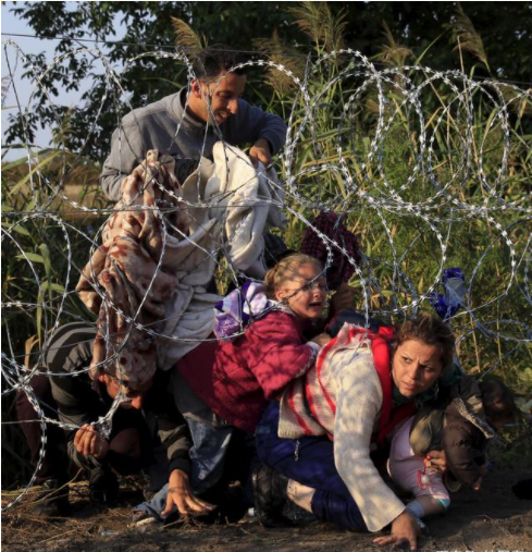 (滞留在白俄罗斯的中东难民试图翻越铁丝网,进入波兰)