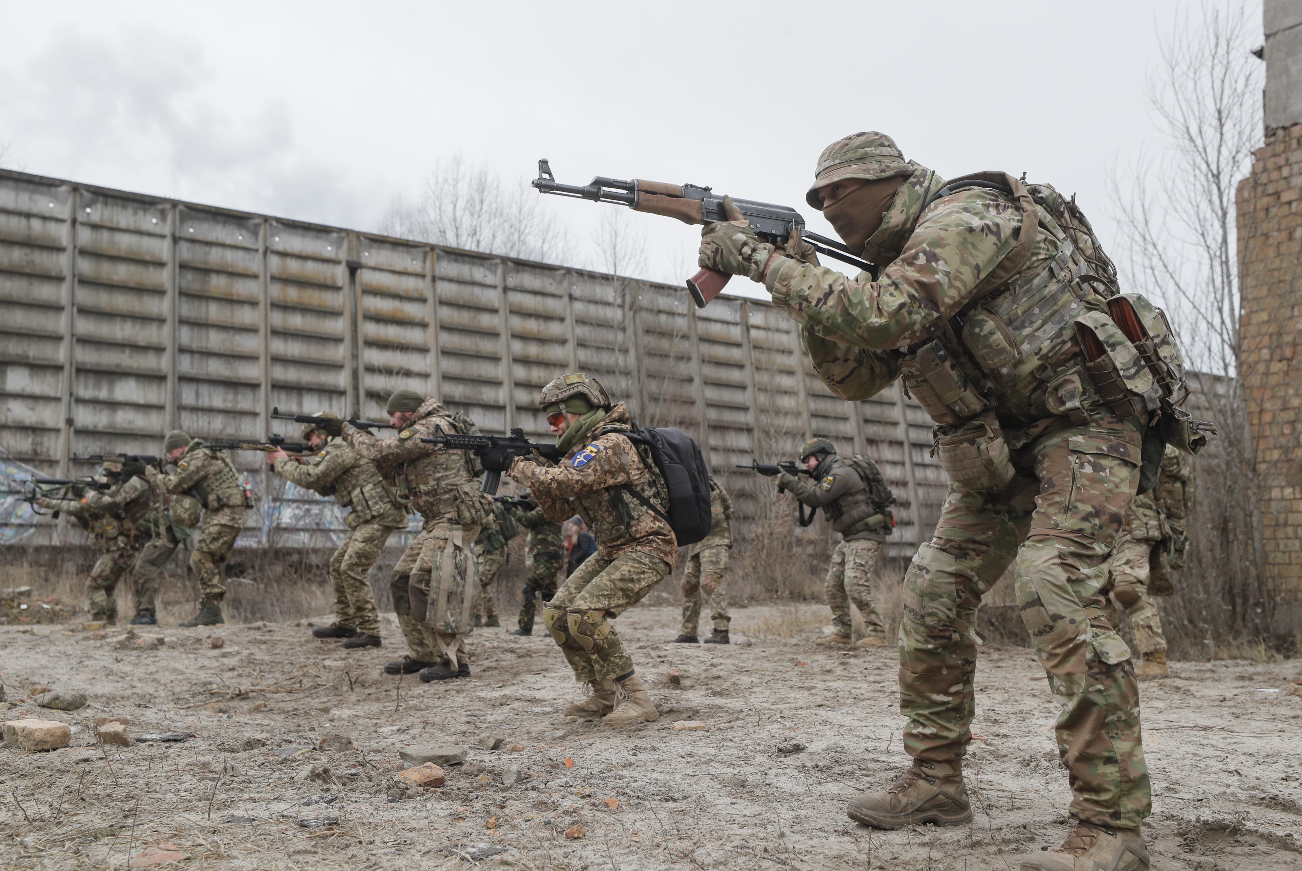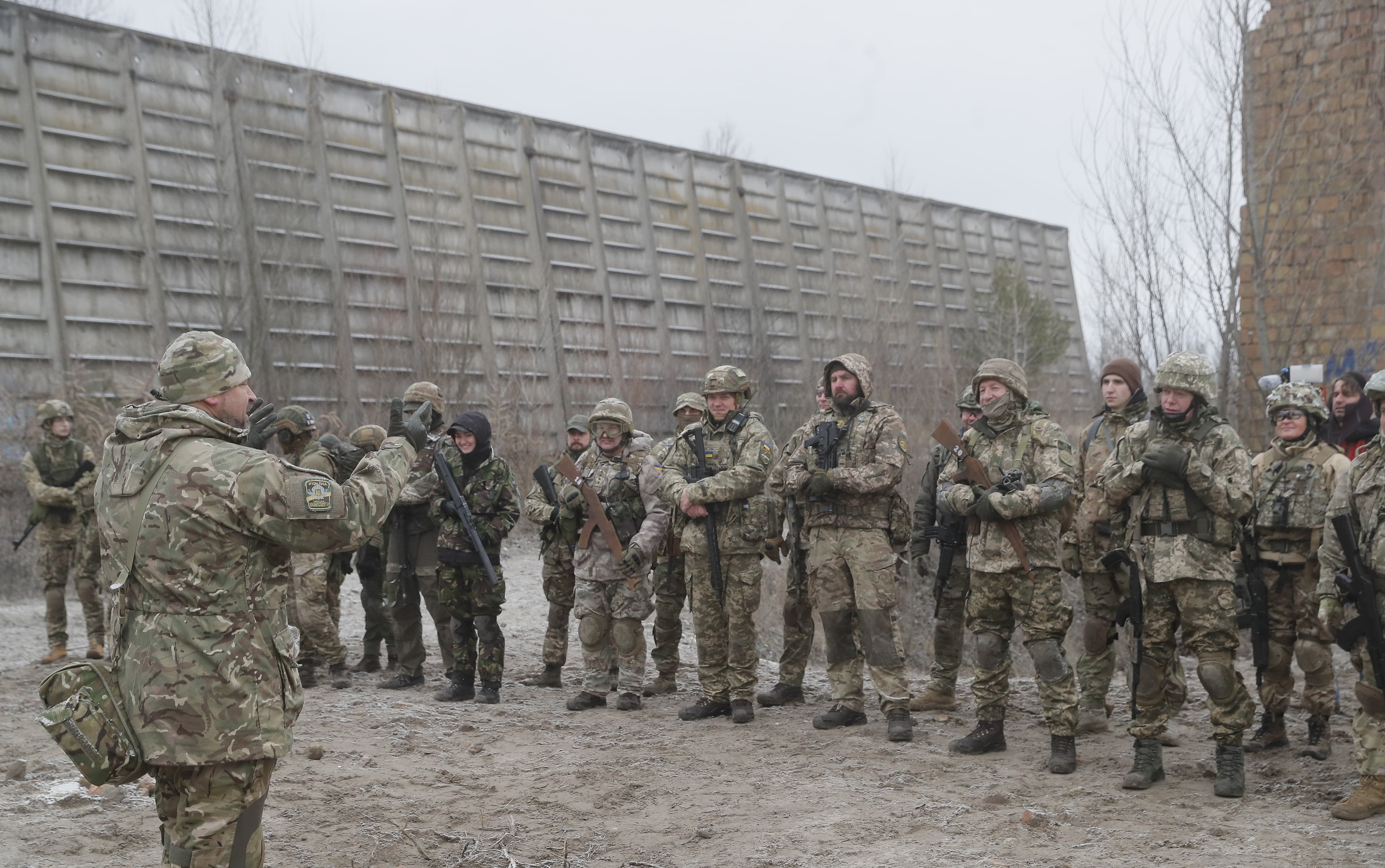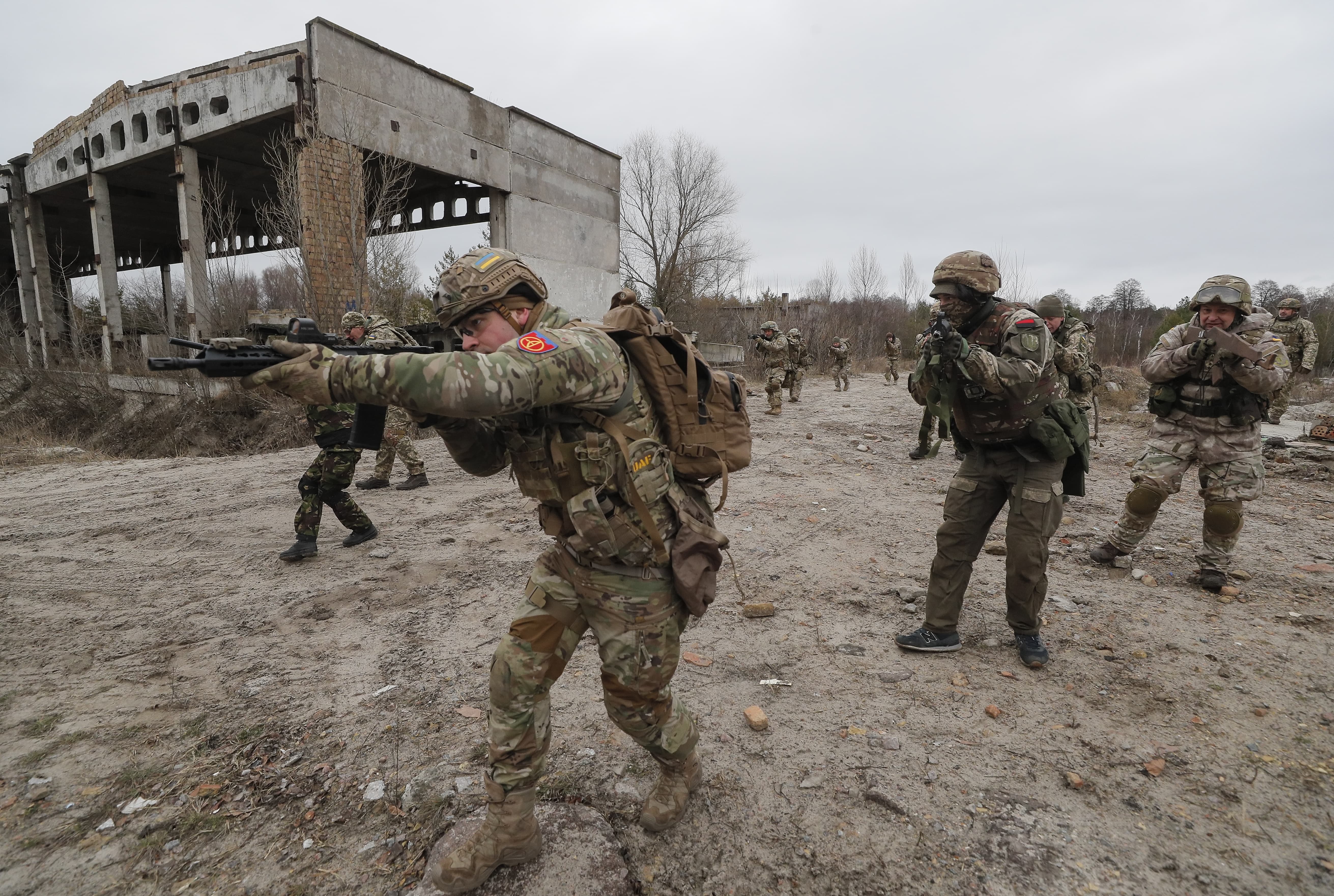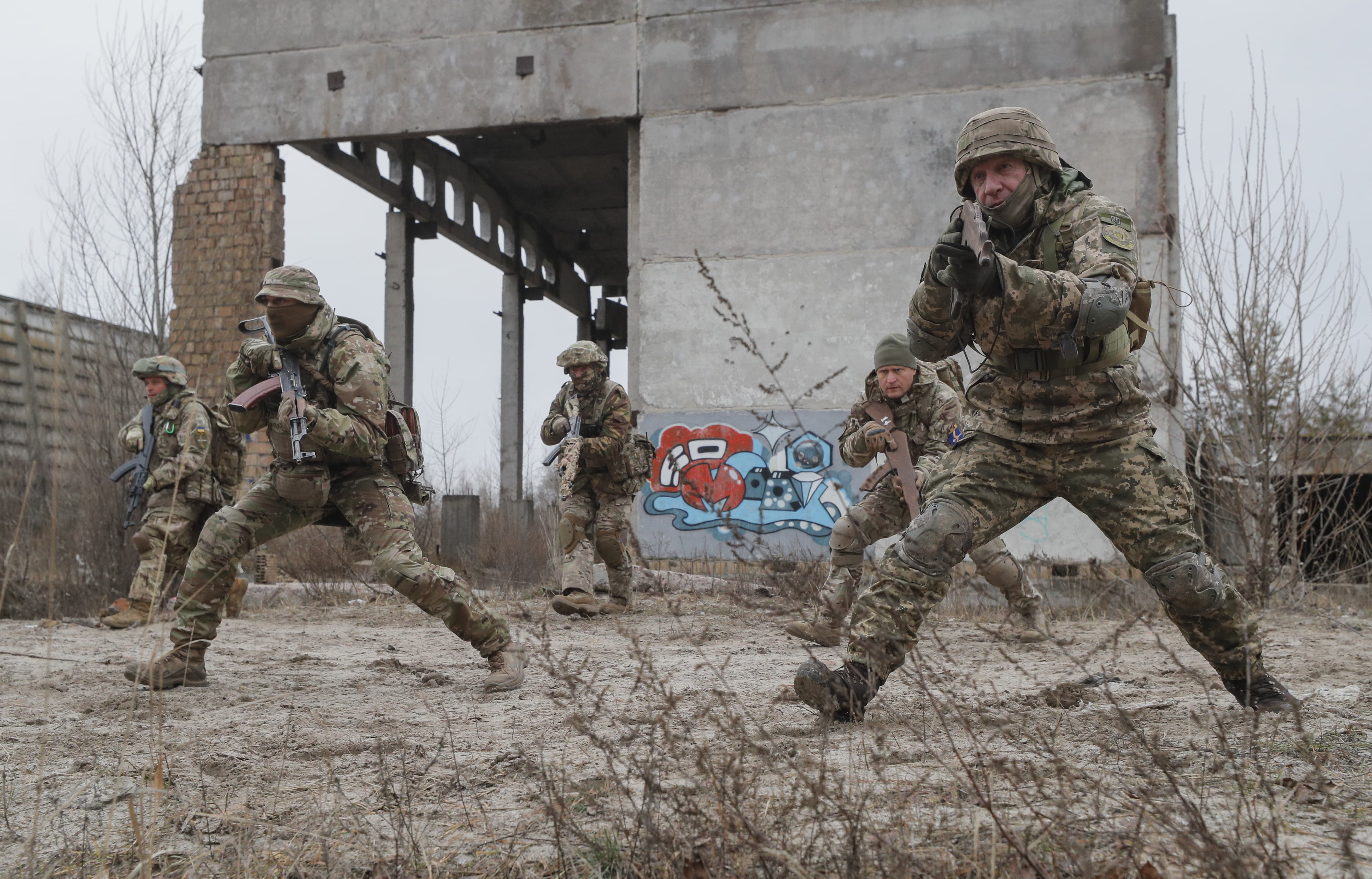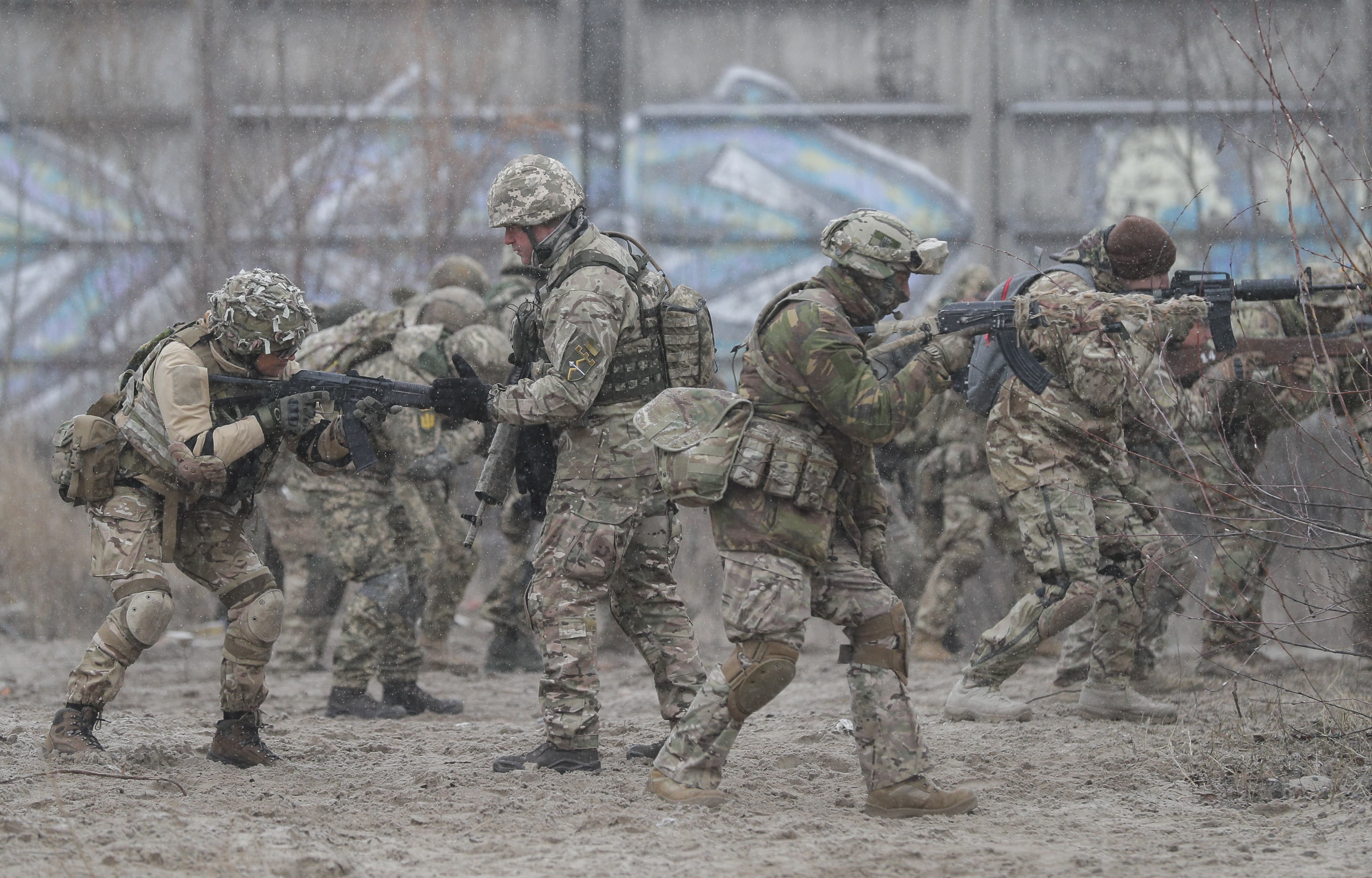 | 烏克蘭預備役人員在基輔附近進行軍事演習 |
