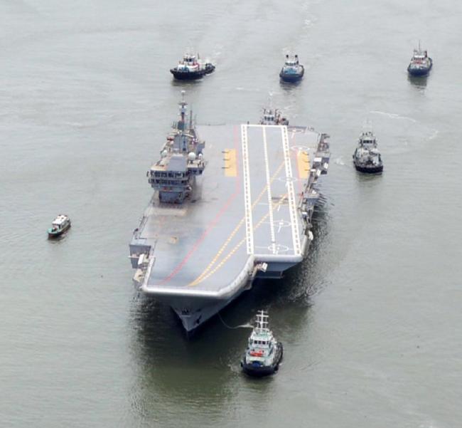 | 印度航母海試小心翼翼:拖船緊跟 |
