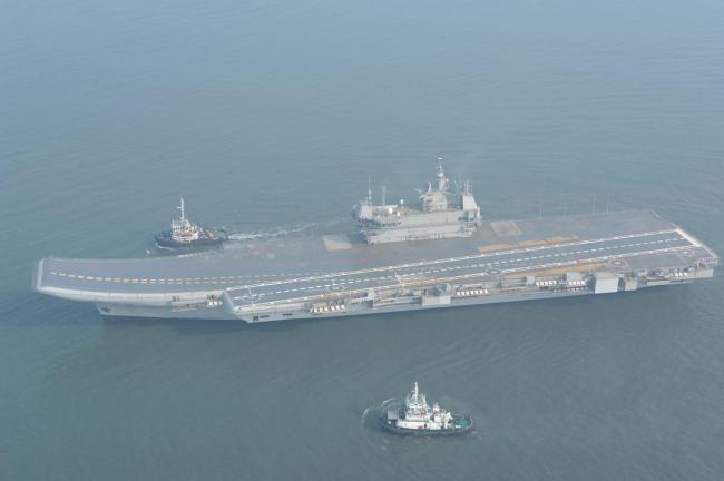 印度维克兰特号航母完成了第三次海试后返航,海试中进行了急转弯,检验其机动性。