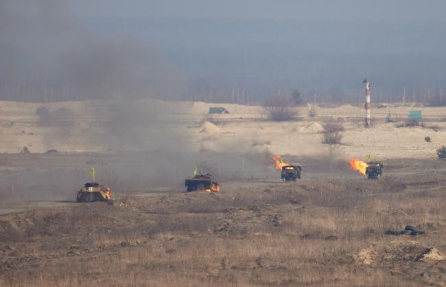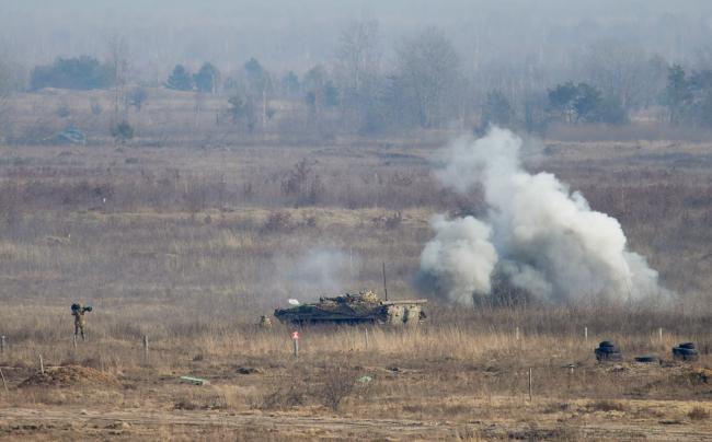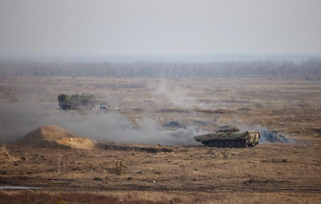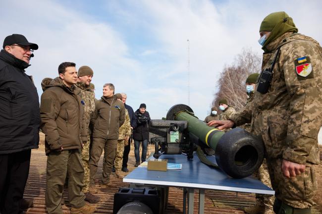 当地时间2022年2月16日,乌克兰Rivne附近,乌克兰庆祝“团结日”当天,乌克兰军队举行军事演习,乌克兰总统泽连斯基视察军演。据报道,2月16日,传说中的俄罗斯“入侵”乌克兰的时间,两国边境却一片缓和:当地时间2月15日,俄罗斯称已从乌克兰边境部分撤军,俄方对重新谈判以结束与西方对峙持开放态度。西方国家同步表态称,愿继续寻求外交途径化解危机。