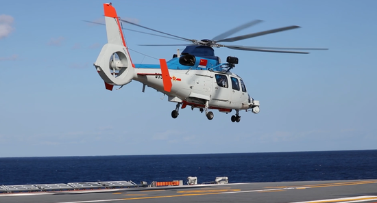 直升机放飞小组解系留、撤轮挡,