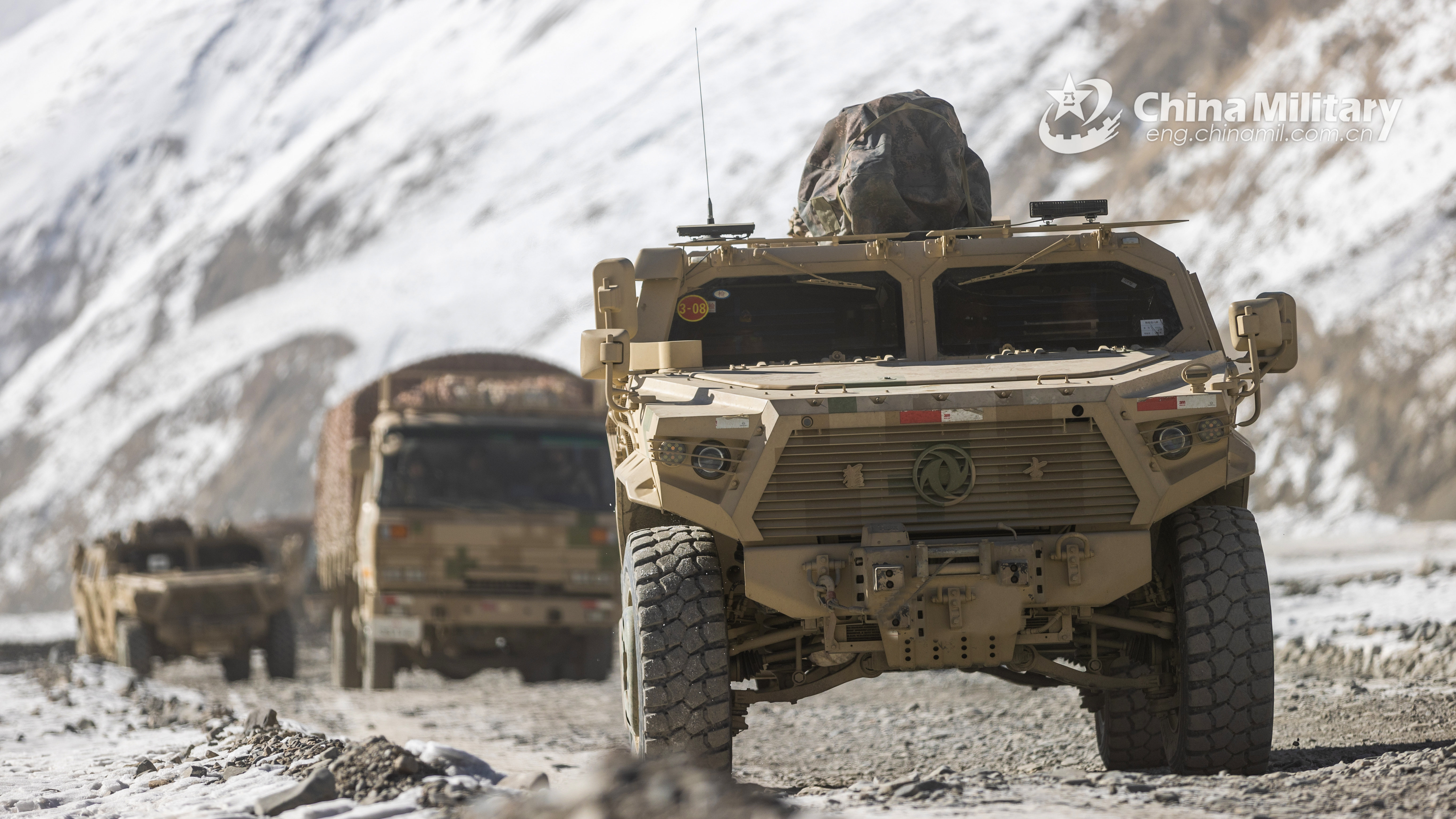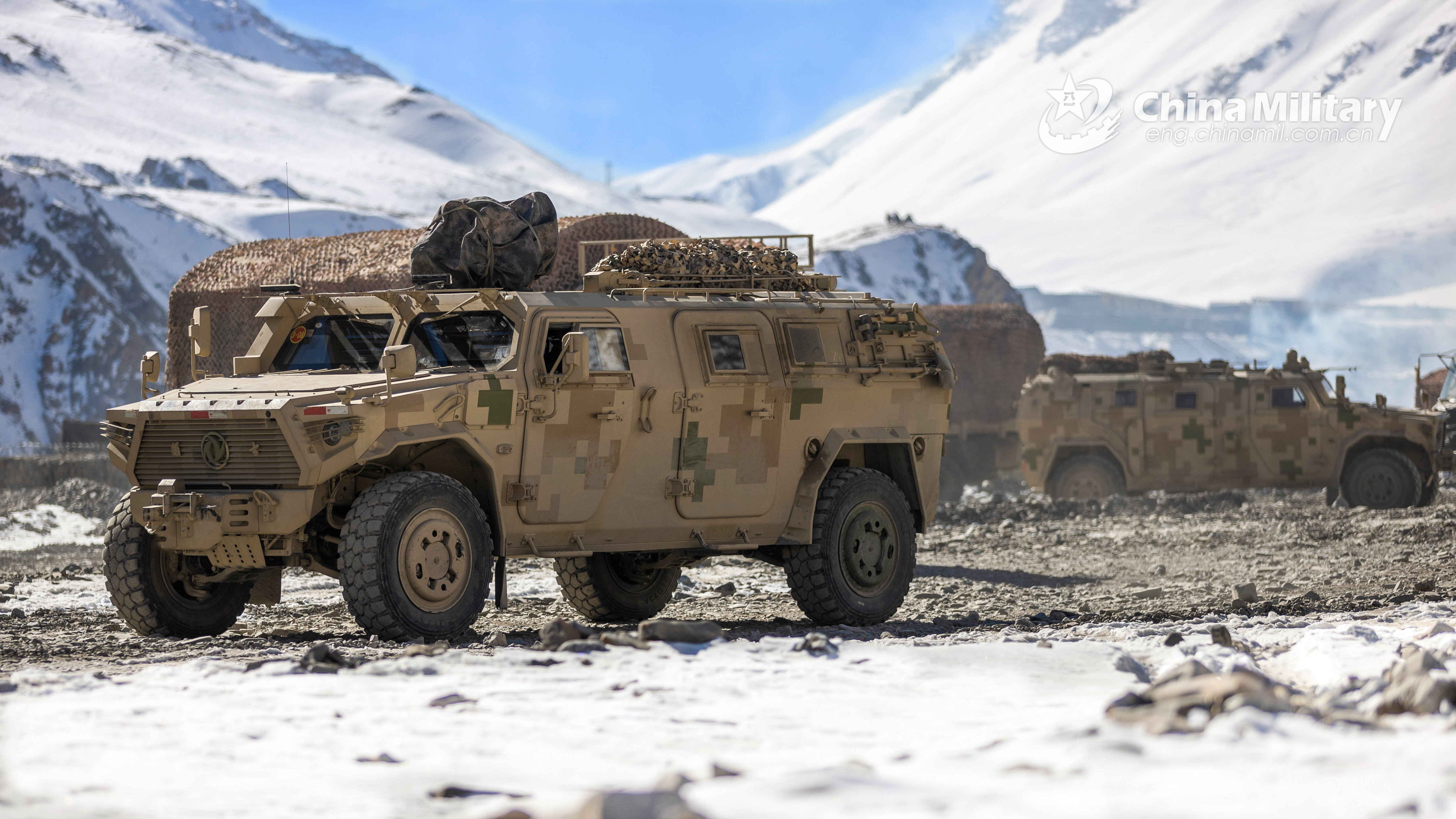 2022年2月21日,新疆军区某团东风猛士越野战术装甲车在复杂路况下进行驾驶训练演习。猛士突击车装备重机枪、榴弹发射器等武器能够在高原地区机动,用于快速部署、运输部队和突击行动。