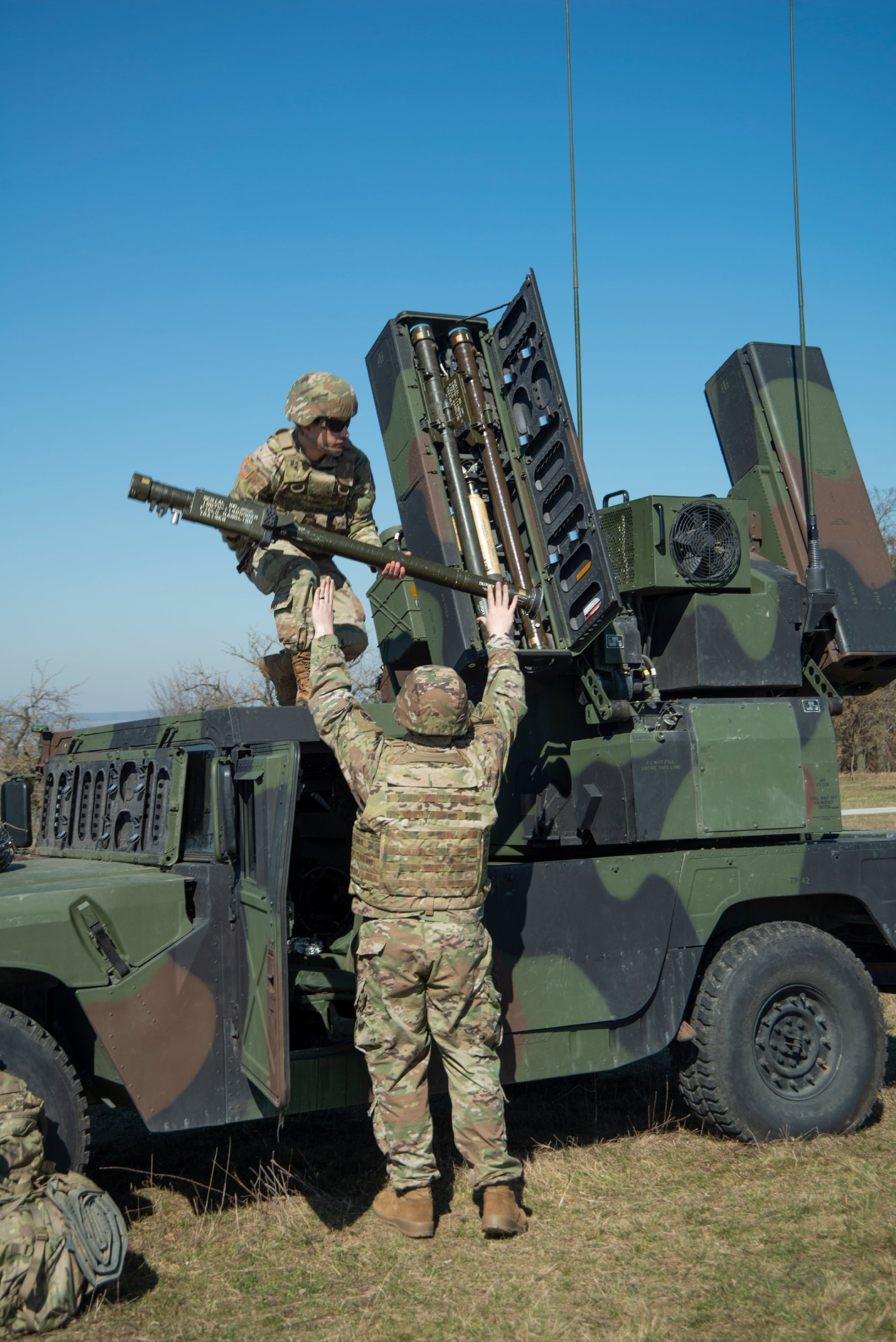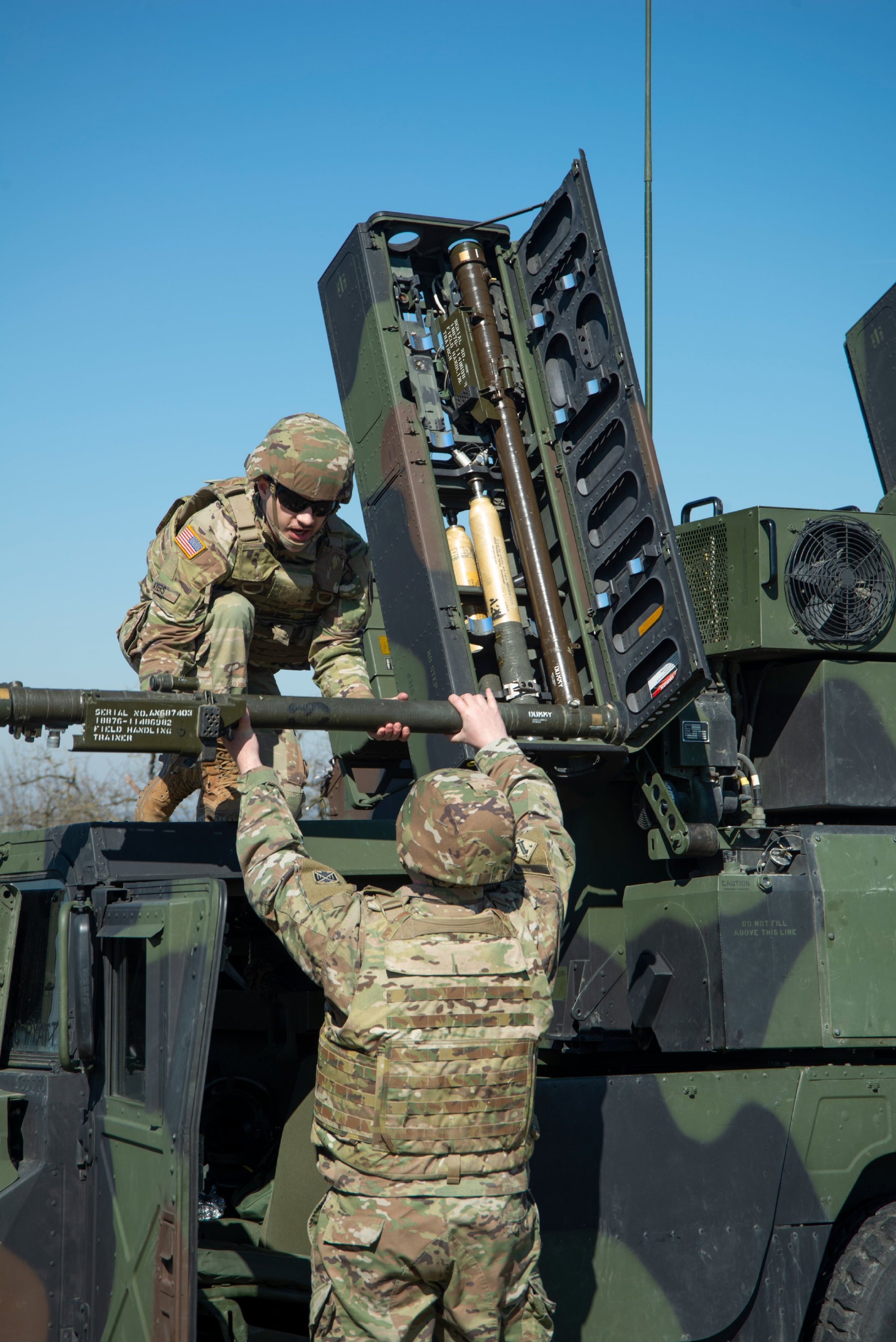 美軍毒刺導彈防空車裝填導彈,就是把肩扛式毒刺導彈裝到發射裝置上,沒有啥花頭。