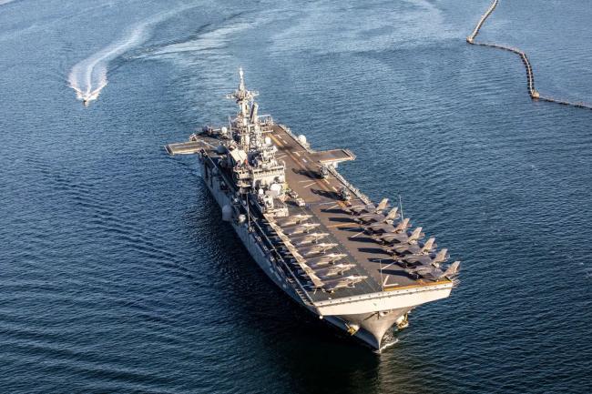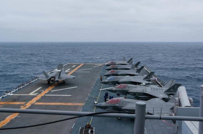 | 美军两栖攻击舰搭载20架F-35B变身航母 |
