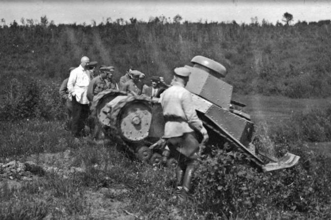 俄罗斯举行的胜利日阅兵活动中出现的苏联研制的第一种坦克 “小型护送坦克”(MS-1或T-18)。