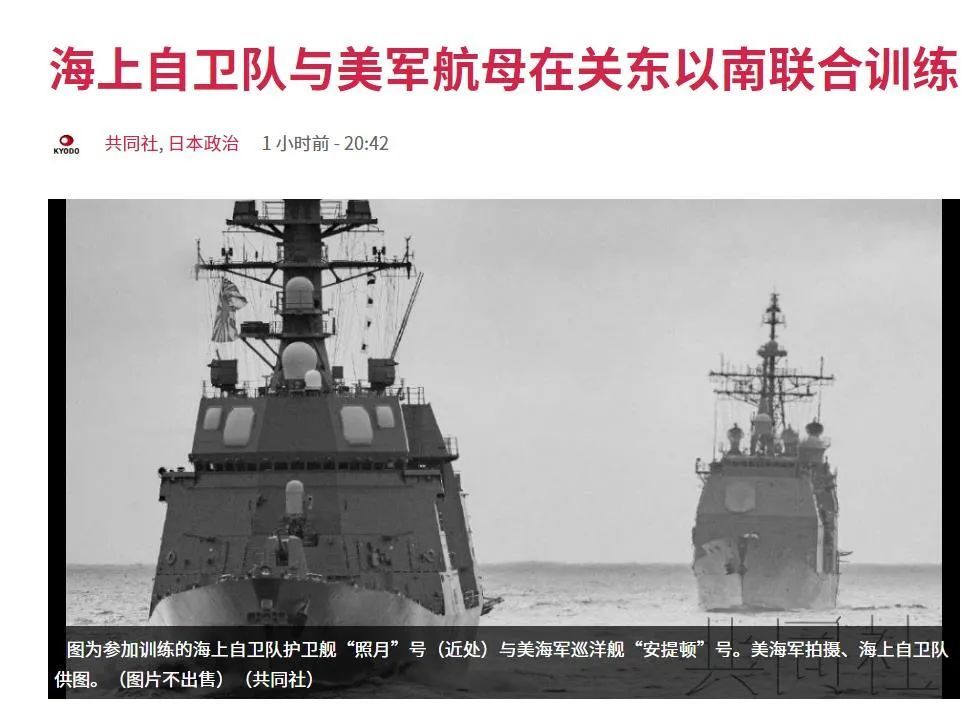 27日晚,日本共同社發布了一條日美艦艇演練的最新動態,稱“海上自衛隊與美軍航母在關東以南聯合訓練”。但由於這一演練已持續多日,此前日本防衛省與海上自衛隊網站上不斷對相關演練進行發布,因此老劉認為在中國即將進行南海演習之際,日方發布相關消息是有着借美國主子威懾中國的意思。
