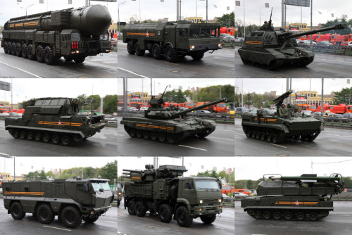 在5月9日莫斯科红场胜利日阅兵活动中,俄军将有151件作战技术装备参加,与2013年相比多出50件。其中陆战武器中,大多数是都是老面孔,新型武器不多。都是军迷们熟悉的武器,如S-400、T-90A、虎式装甲汽车、白杨M战略导弹等。其中首次亮相的有台风装甲防护车、菊花S反坦克导弹。