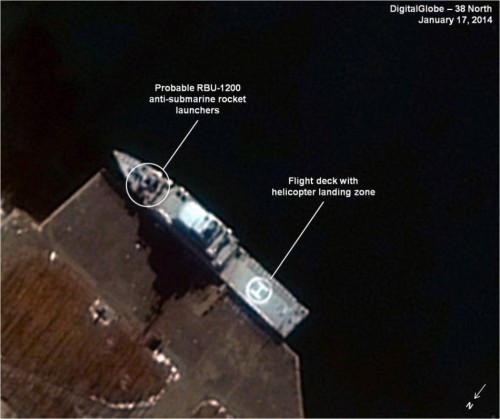 北纬38度网15日报道,它从商业卫星图像上确认了两艘新的直升机战舰。根据报道,新的战舰是“朝鲜人民军海军25年来建造的最大水面战舰”。