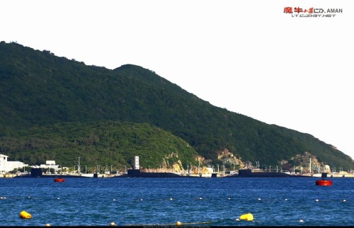 近日,網友在我國海南某軍港附近拍攝到,該港內停放了多艘中國海軍艦艇,其中包括數艘罕見的核潛艇,從外形上看應為1艘093型和2艘094型。(來源:超大軍事 魔牛小隊)