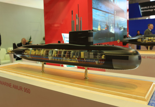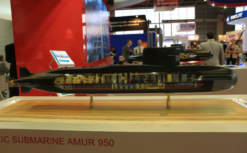 在2013年馬來西亞蘭卡威航展上,俄羅斯阿穆爾1650型和950型常規潛艇模型亮相