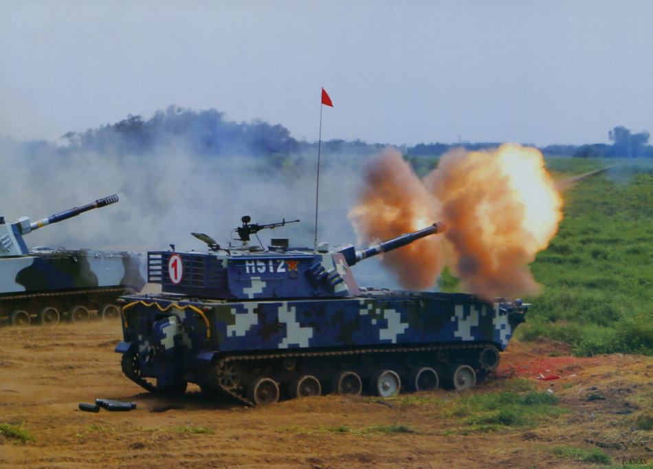 解放军PLZ-07B型122毫米自行榴弹炮开火