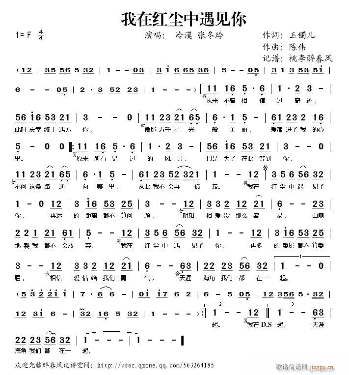 歌曲《我在紅塵中遇見你》 原帖鏈接:http://bbs.voc.com.cn/topic-6286298-1-1.html