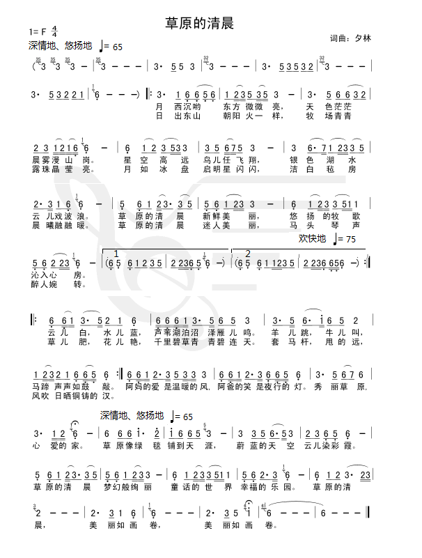 譜和伴奏。星期天下午和地雷哥一起包餛飩,我們就在這首《草原的清晨》旋律中