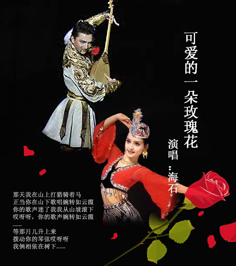 在王洛賓所作的歌曲中,我最喜歡《在那遙遠的地方》.它抒情而優美,堪稱中國民歌的經典.榮幸的是1998年我作為一名業餘歌手被邀請在Los Angeles Music Center(曾是奧斯卡頒獎地)和Irvine Barclay Theatre獨唱了《在那遙遠的地方》等歌曲,向美國朋友介紹了這首優秀的中國民歌. 《可愛的一朵玫瑰花》