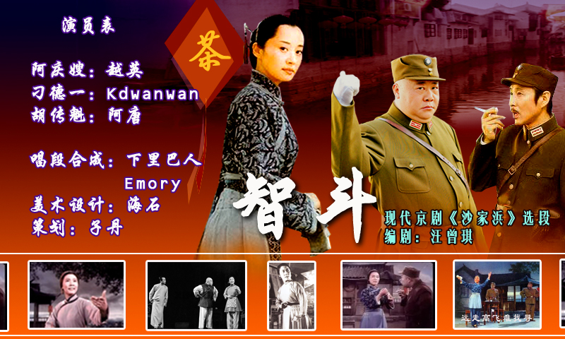 今當菊花怒放,家釀成熟,子丹導演雅興大發,邀約Kdwanwan、阿唐、越英等人下陽澄湖捕魚捉蟹,講好按市價收買。誰知天旱水淺,魚不上網;退而求其次,便在湖畔春來茶館遺址重排‘智斗’一折。子丹導演學識淵博經驗豐富,導將起來細緻入微一絲不苟。唱手們各獲NG無數,剃頭過關後雖兩眼發青(都是搗的),但實覺受益非淺。演唱實錄後,子丹導演又請來各路高人進行後期製作、美術加工。可以這麼說,沒有子丹導演就沒有大家今天聽到的‘智斗’。