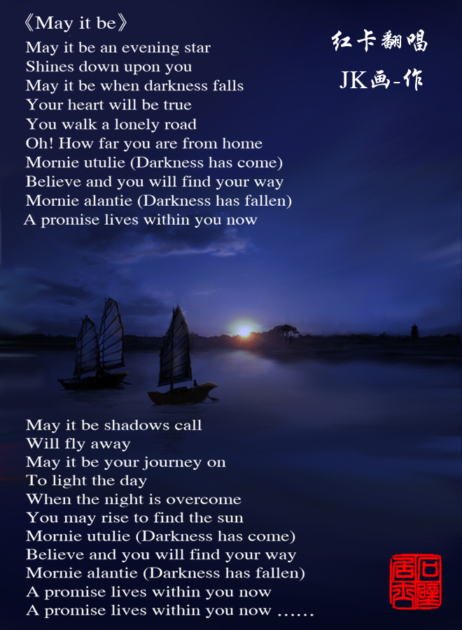 《May it be》 作曲為知名組合 班得瑞 。2001年年底, Enya (受<魔戒>導演彼得傑克遜邀請創作了作為電影的主題曲,獲得了極高的學術榮譽和商業地位,發行後在德國單曲榜成為了冠軍。在多國下載榜也位居後座,之後獲得奧斯卡<最佳原創歌曲>金球獎<最佳原創歌曲>格萊美獎<最佳電影歌曲>提名,以及多個其他多國金獎。