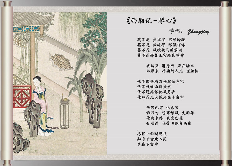 | 【秋颂】zhangjing: 学淑女,唱越剧 《西厢 - 琴心》 |