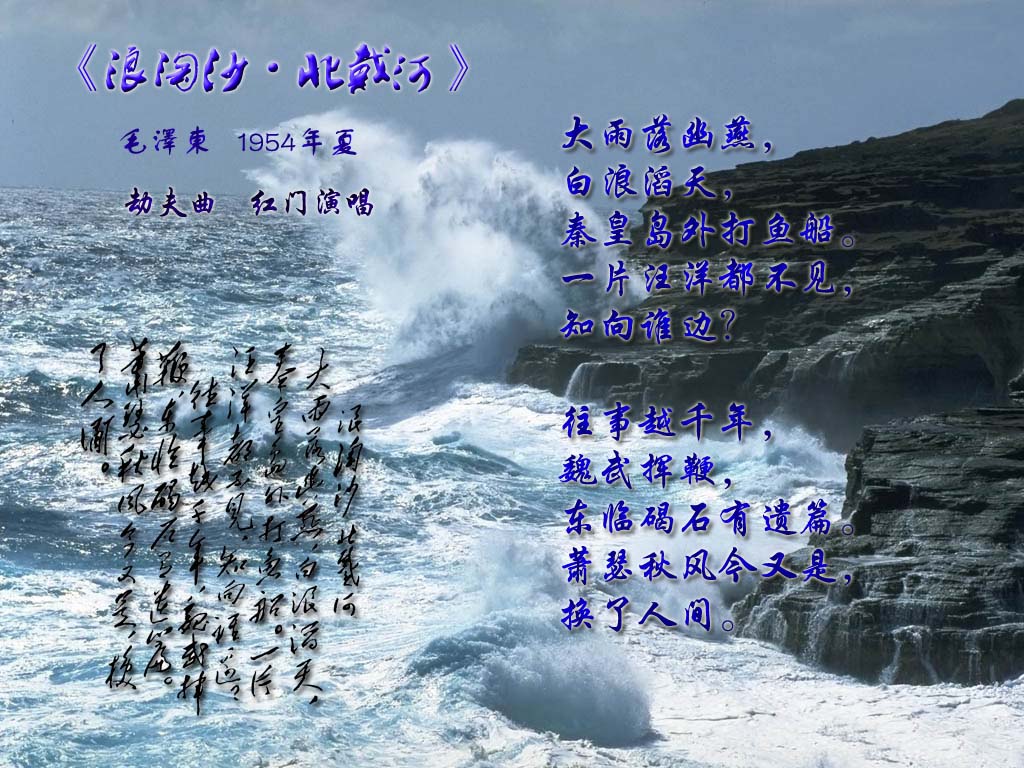開玩笑了,海石頭俺是劈不動的,男中版俺很為難,想起了另一版的《浪淘沙·北戴河》,俺的舊唱。