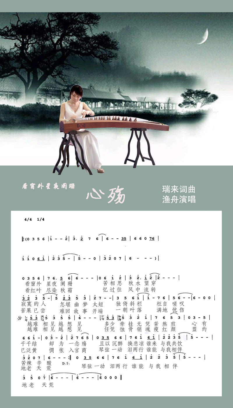 | 漁舟學唱【心殤】 瑞來詞曲編曲 海石制帖 |