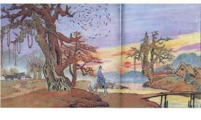 《天淨沙》 作曲:馬上又作詞:馬致遠/梁芒 寂寞枯藤 耳聽老樹 夢話昏鴉 枯藤寂寞 老樹耳聽 昏鴉夢話 |