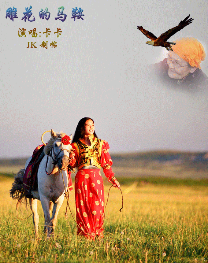 三弟張卡飛(卡匪)要額接招PK《雕花的馬鞍》,額知道額又要贏了,但即便是贏了三弟,有點欺負他的意思咱也得接招不是嗎?否則額這大哥就別當了。 喜歡JK大師為卡卡定製的圖帖,木有打招呼就擅自拿來用了,希望JK大師不惱,也希望大家不要看着JK大師的圖上的“卡卡演唱”字樣犯嘀咕。這是本唱的歌聲,有機會準備和卡匪上雙簧用的。