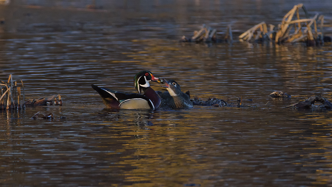 Wood duck一般很難接近,但談戀愛時膽子就大起來。今天這幾張雖然還是有些遠,但對我來說已是很難得的了。 P1
