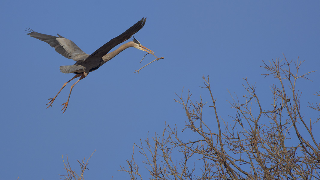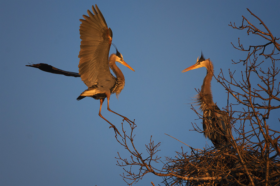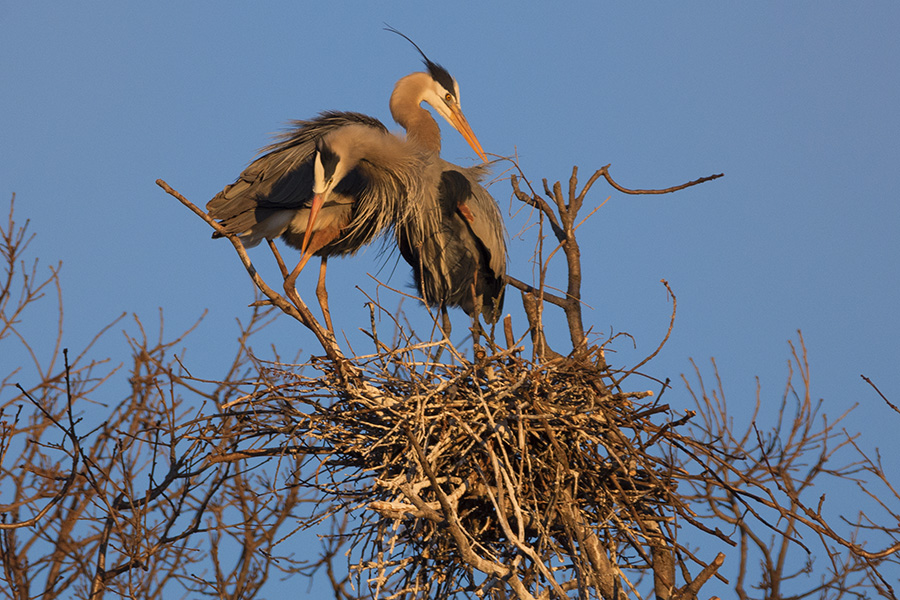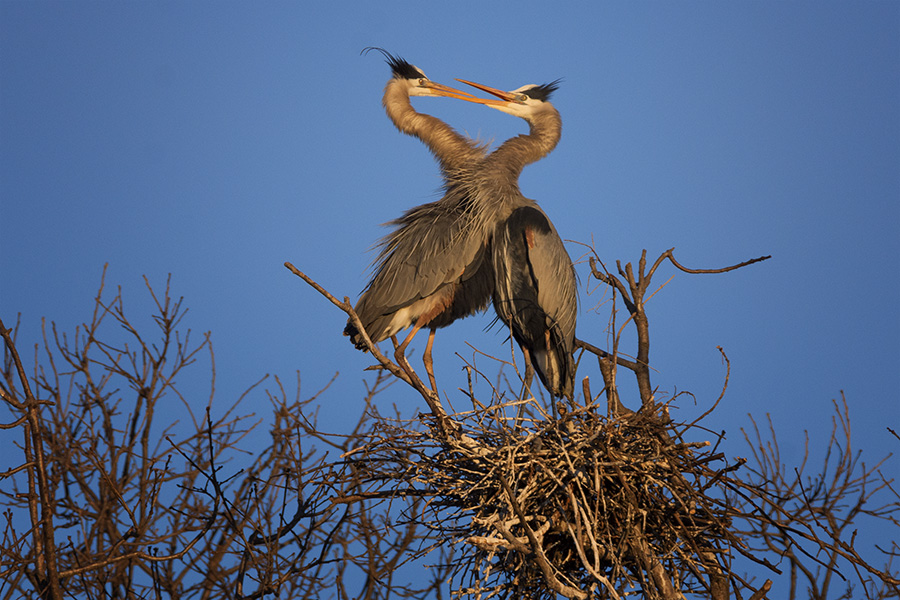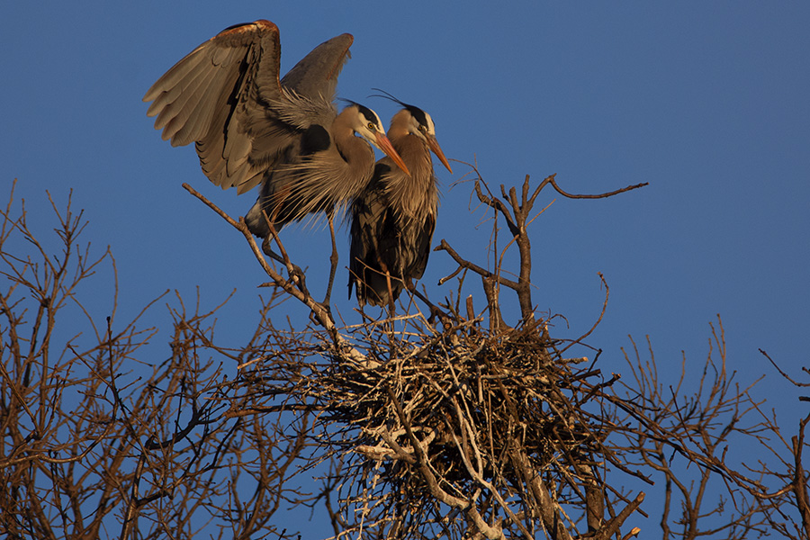昨天早上到老地方去看正在交配季节的大蓝鹭。气温在零度以下,还刮风。但一对对大蓝鹭秀恩爱的热情不减。 1.