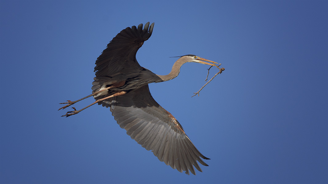 在爱情的激励下,太阳一出来,公鹭就开始了筑巢的行动。它们不断飞到树林里和水边的灌木丛里寻找适合筑巢的树枝口叼回去。如果找到大一点的,还会绕场一周炫耀一番! 6.