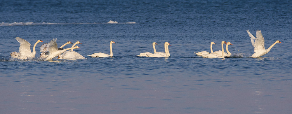 上周五天氣好不容易晴了,急忙提早下班趕到底特律河邊。河面上的冰大塊大塊地裂開、被流水沖走。河裡的鳥兒也比以前活躍多了。 P1 大批的天鵝,只可惜在加拿大那邊,離着好幾百米,有點兒遠。