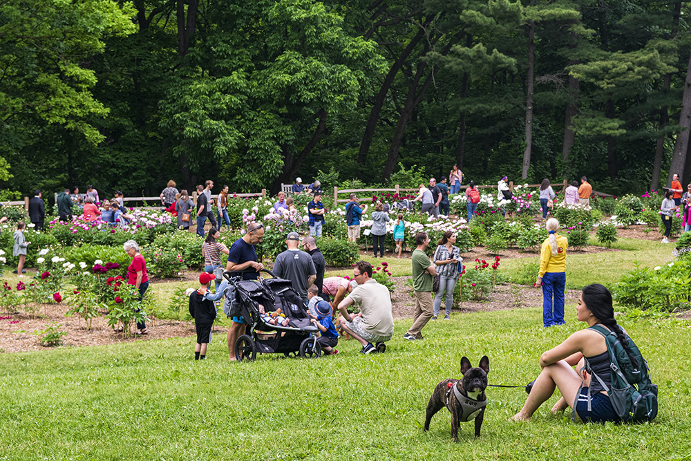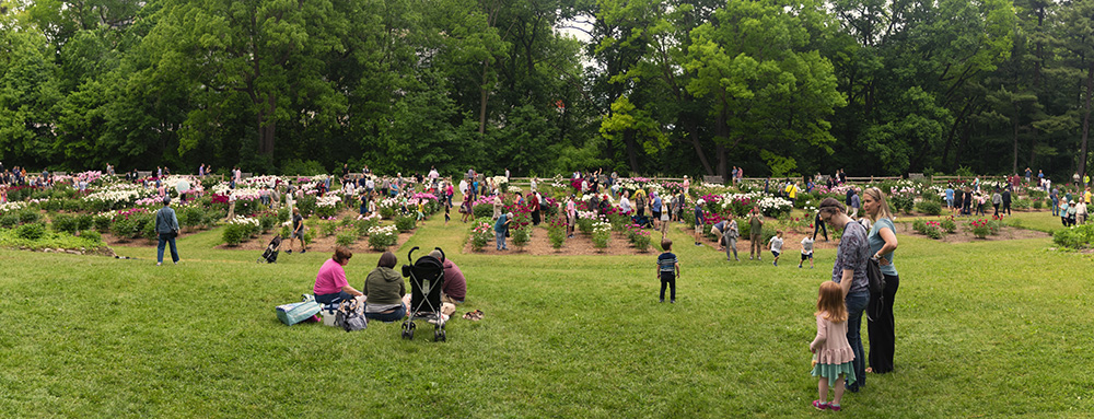 时间过得真快,去年到密西根大学的芍药园赏花赏美女的情形历历在目,今年的花期就已经到了。几周前去过一次,那时大多数芍药只有花骨朵,被告知今年的花期晚了不少天。前几天我家的芍药开了,昨天就和领导一起再去。 P1 看花的人还真不少