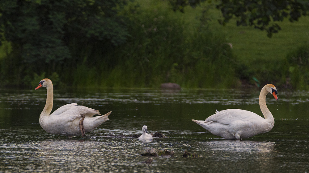 P9 只剩下一隻小天鵝,兩口子看得格外小心。