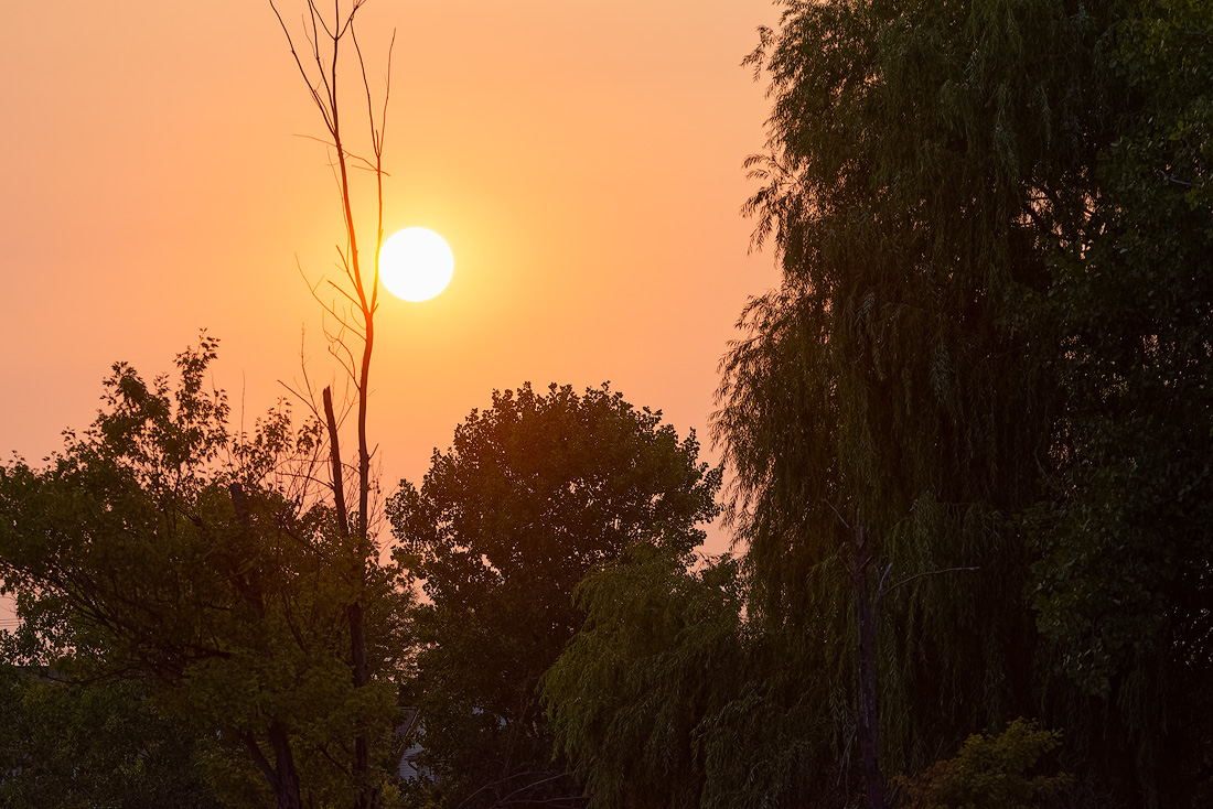 加州大火的煙塵飄到千里之外我們這裡。黃昏到那個拍沙丘鶴聚會的公園時離日落還有一個多小時,天色就已經暗下來。天頂的顏色依然是藍色,但煙塵中的夕陽把地上的一切都罩上一層橘黃色,拍照時像是加了個柔光鏡。公園裡依舊安靜、和諧,只是沙丘鶴們的聚會時間提前了不少。碰到一個帶娃照鳥的,順手抓了張萌照。 P1