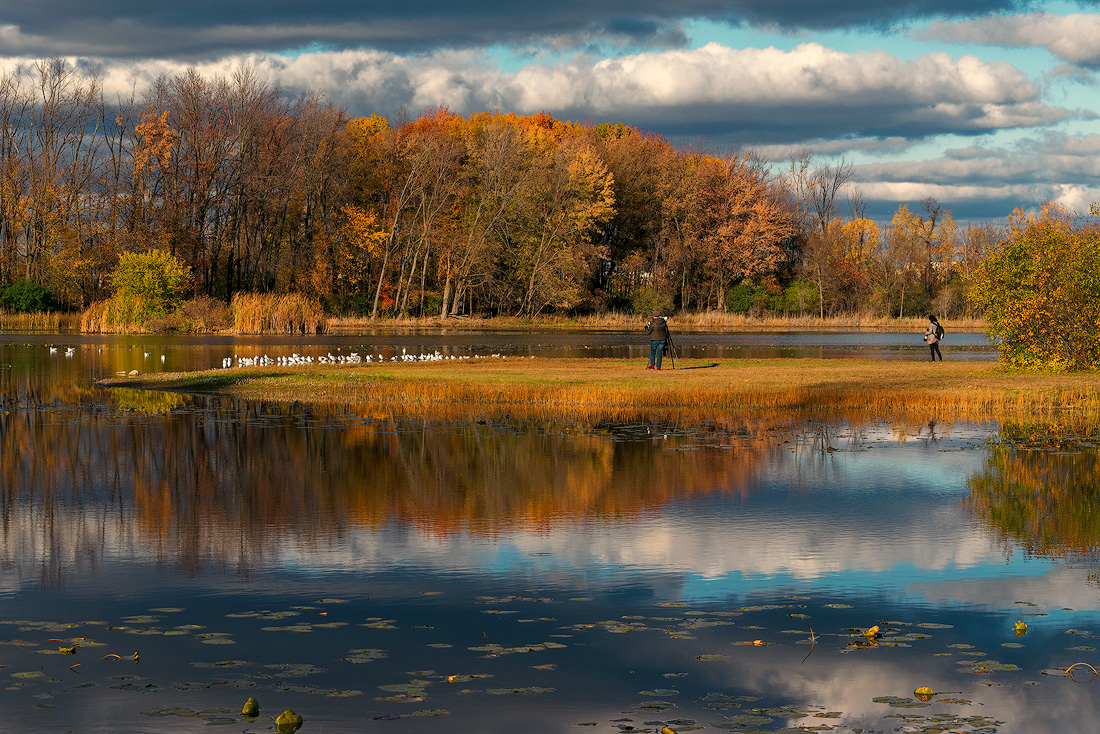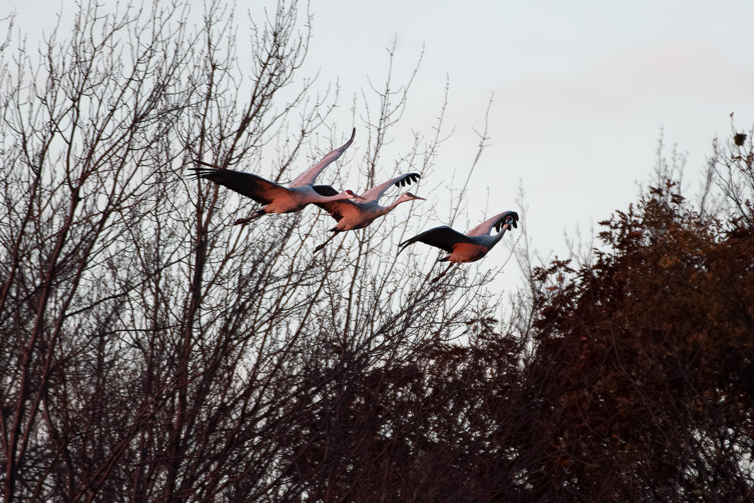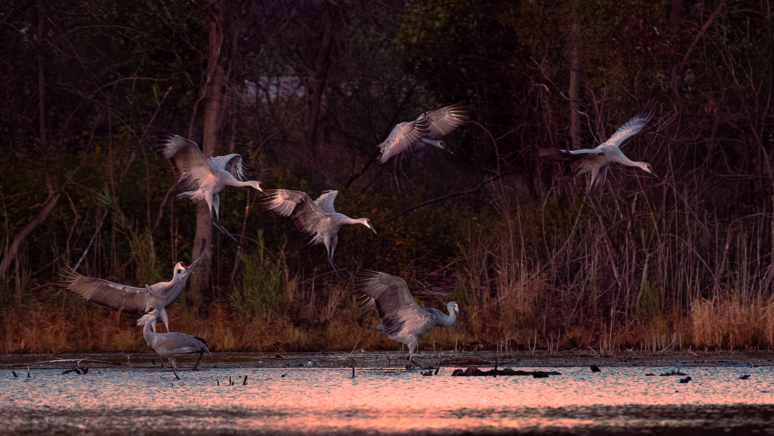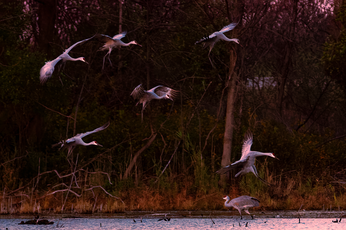 這幾天溫度下降,風雨交加,聽說還會下雪。不知道每晚的沙丘鶴聚會還能延續多久。 P1 等待沙丘鶴的到來。就像是觀眾、舞台、燈光甚至配角都已到位,主角卻姍姍來遲。