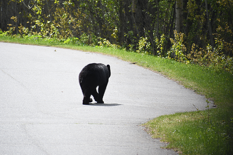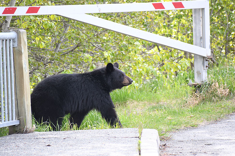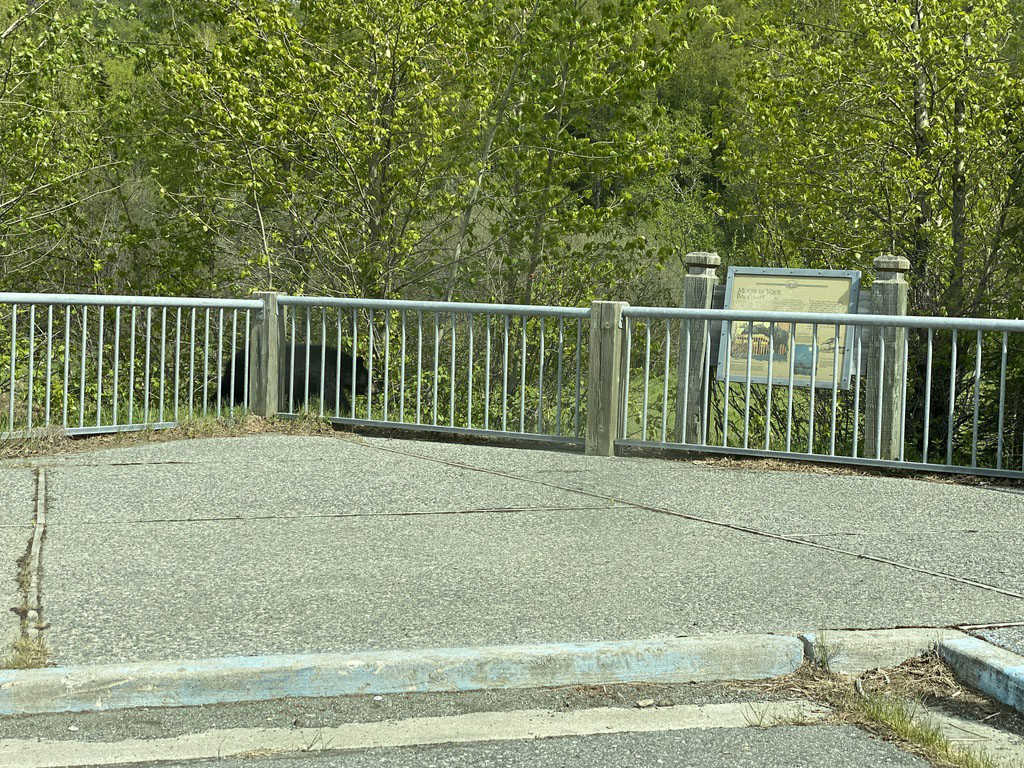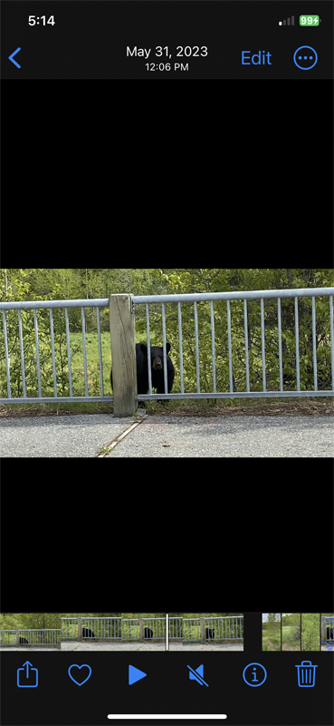 场景一在chugach State Park Headquarters,我在这停车场呆了一段时间,看 Snow Plow train, 周围转悠,来这里主要是看有什么鸟,听声音都是熟悉的,有几部车停在这儿,也见到办公室人员进出,没人告诉我有熊在这里,我见没什么特别,就开车过到Seward highway另一头,距离很近的Potter creek trail head场景二。 才下车不久,我听到美妙鸟叫声,突然有一部车开进停车场,告诉我,他们才在路口不远处,很多车停下来等熊过马路,what? 真的吗?在那儿?他们告诉我要小心。我本来还不信,后来,想想,宁信其有,于是我赶紧坐回车内稍侯看看。可能也就一两分中吧,牠果真出现了,又紧张,又兴奋,拿出手机赶紧拍,回头想想,几分钟前,我还挨着铁栏杆站着,如果我没回到车子内,可能就。。。 我一直坐车内,等到牠走向另一端,我才拿出相机“追”拍牠。 判官们,你觉得我离牠多远,即兴奋又害怕,不是吗?