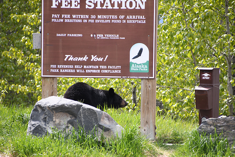 最后这一张是牠走到了场景三,Turnagain arm trail northern trail head,这里停很多车,我试图警告告知从步道走下来,还有刚开车进来的人,有熊。我是不敢走步道了。 回到场景二,这只鸟还在,还好,总算看到了,这本是我的目的,没想到,被这只熊折腾了一小时,厉害不。 (这篇,版权所有!!请勿转载任何图片)